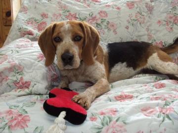 Travis is a 3 year old medium sized beagle. He is very high energy and everything is interesting to him. He has learned some obedience commands, but you'll have to wear him out a bit before he'll focus on just one thing. Usually when I'm walking him he's running circles around me. Given that he is easily excited, Travis should be in a home without small children or cats. He needs an owner with more energy than himself, and that can also be very patient with him. Once he settles down, he can be very sweet and would love to spend more quality time with you. Travis would also be good in a home with space for him to run. Come on in to see Travis and take him for a walk. He'd love some extra attention.